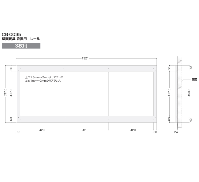 | サイズ(mm) | 幅1350×高さ537.5×厚み24 (設置時寸法) |